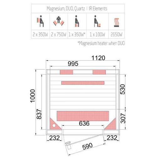 Cabine infrarouge CHALEUR 112 cm x 100 cm x 200 cm