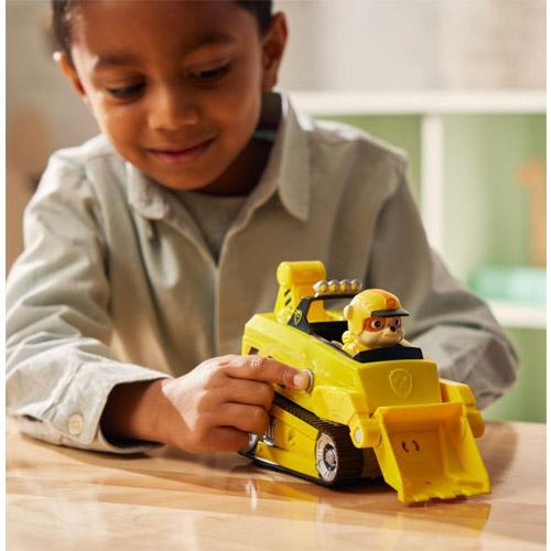 Appuyez sur le badge Paw Patrol de son véhicule pour faire tourner la pelle et révéler la corne de rhinocéros.