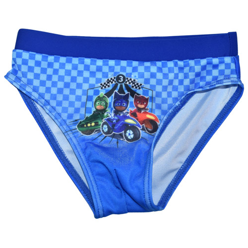 Slip de bain Pyjamamasques avec une image des héros de la série bien connue Pyjamamasques. Bibou, Yoyo et Gluglu vous donnerons encore plus de plaisir aquatique.