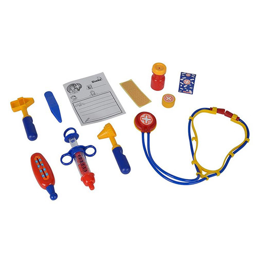 Dans la mallette de docteur de Simba, tu trouveras plein d'accessoires comme 1 seringue, 1 stéthoscope, 1 thermomètre, etc.