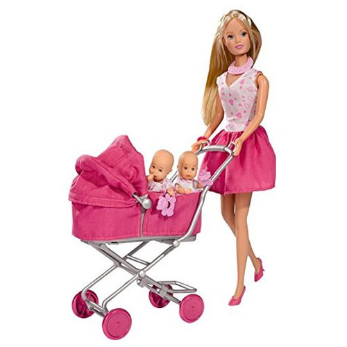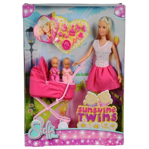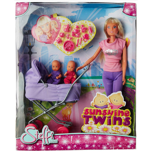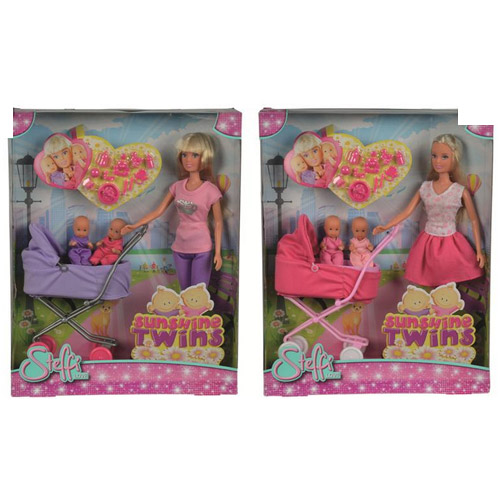 La poupée mannequin de 29 cm est accompagnée des jumeaux de 5 cm.