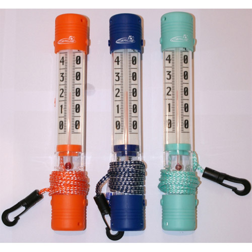 Thermomètre en forme d'un tube de Kerlis, peut être utiliser dans chaque piscine et spa, disponible en trois couleurs.