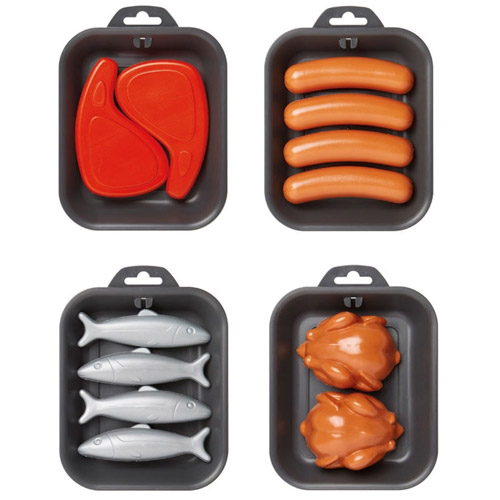 Préparez les meilleurs repas avec le plateau d'Ecoiffier Chef, vous avez le choix entre un plateau avec du poisson, des saucisses, du poulet ou des côtelettes.