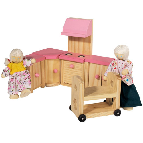 La construction ouverte de la maison de poupée d’Eichhorn donne la possibilité aux petites mains d’enfants d’accéder à n’importe quelle chambre dans la maison.