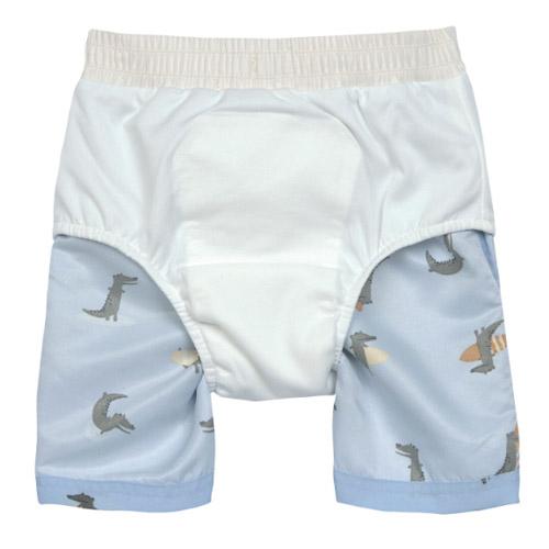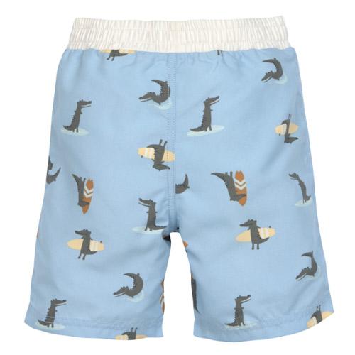 Le short de bain UV bleu pour enfants avec protection UV 80 assure un ajustement confortable et un plaisir de bain grâce à la couche de bain intégrée, à la large ceinture et à la finition sans couture à l'intérieur.