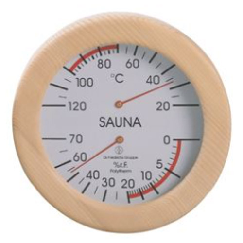 Thermo/ hygromètre sauna rond en bois diamètre 19 cm.