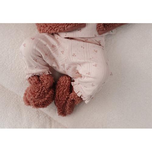 Ces adorables chaussons sont fabriqués dans une matière teddy délicieusement douce et doublés de coton biologique.