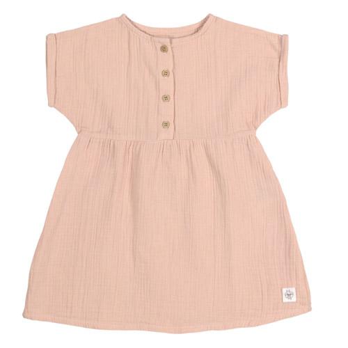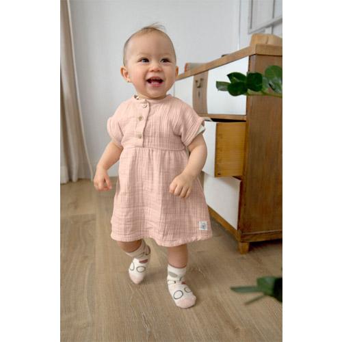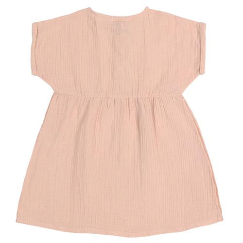 Cette robe en mousseline à manches courtes et longueur au genou pour bébés et jeunes enfants est légèrement évasée et a une allure élégante sans être trop chic.