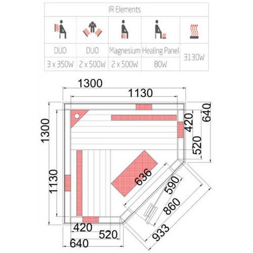 Infrarood cabine INFRAWAVE 132 cm x 132 cm x 202 cm