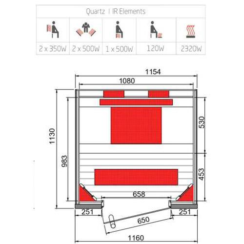 Infrarood cabine SENSES 116 cm x 113 cm x 198 cm