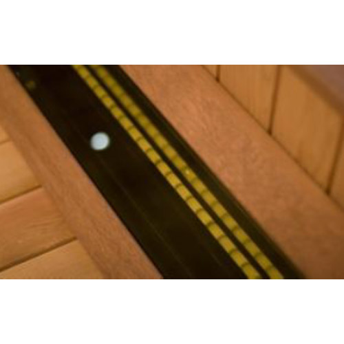 - Bank, ergonomische rugleuningen en vloer in Canadese red ceder, kunstlederen hoofdsteunen en zitkussens.