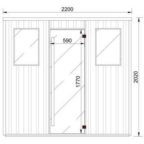 - Getinte veiligheidsglasdeur 1770 mm x 590 mm x 8 mm met bruine scharnieren en cederhouten handvat, 2 vensters uit getint veiligheidsglas.