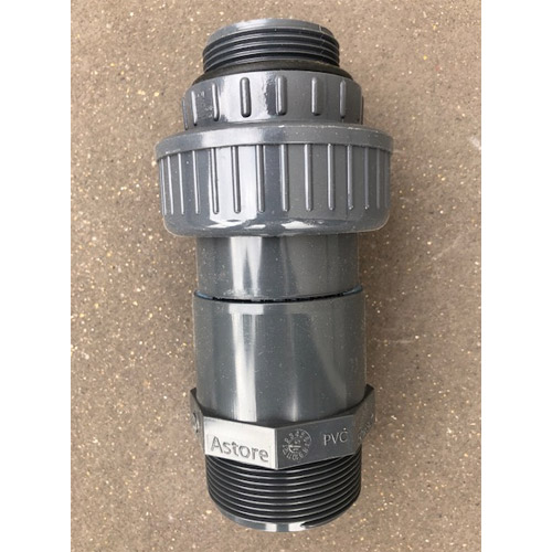 1 1/2'' schroefdraad word ingedraaid in de SunSpring warmtepomp en de buis van 38 mm van uw zwembad word op de andere kant, de 2" buitendraad opgeschroefd.