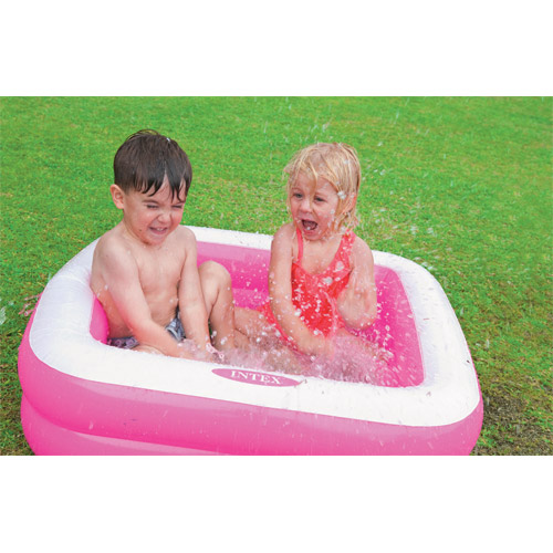 Het Speelbox zwembad voor baby's van Intex is vervaardigt in vierkante vorm en verkrijgbaar in twee kleuren.