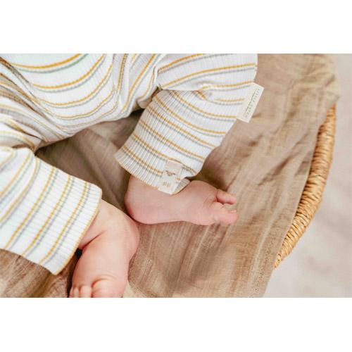 Gemaakt van biologisch katoen met een geribbelde structuur, heeft het een gestreept patroon in meerdere kleuren, waardoor het perfect te combineren is met de andere items.