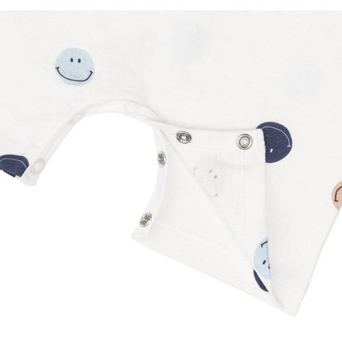 De hoogwaardige playsuit is huidvriendelijk. De delicate strikbandjes maken het aan en uit trekken gemakkelijk, Terwijl de praktische drukknoop het verschonen van luiers een fluitje van een vent maken.