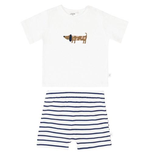 Pyjama Lässig set met korte mouwen Gots Dog wit-donkerblauw
