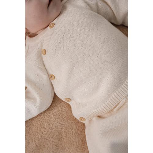 Dit gebreide overslagvestje in de kleur Off white met subtiel stippeneffect is niet alleen zacht, maar ook stijlvol en warm.