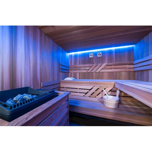 -Indirect LED licht in vals plafond, inclusief saunalamp.