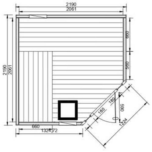 Sauna DISCLOSURE 220 cm x 220 cm x 200 cm vijfhoek