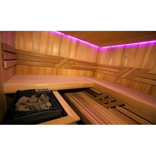 - Indirect LED licht in vals plafond, inclusief saunalamp.