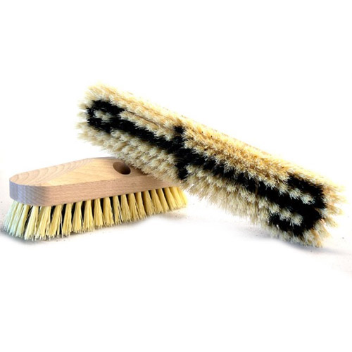 Zo kunt met deze borstels groene aanslag wegschuren van paden of tuinmeubilair, de rug van de schuurborstel bestaat uit hout in de vorm van een anker met een opening voorzien voor eventueel een borstelsteel.