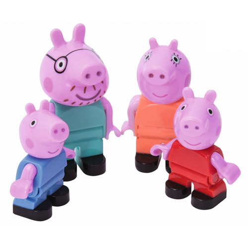 Speel met Peppa George, papa en mama Pig in je zelfgebouwde speelhuis (apart verkrijgbaar).