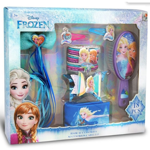 Disney Frozen set.Deze leuke haaraccessoires zijn een echte musthave voor iedere Frozen fan!De set bestaat uit: borstel, haarelastiekjes, haarband, speldjes, ....