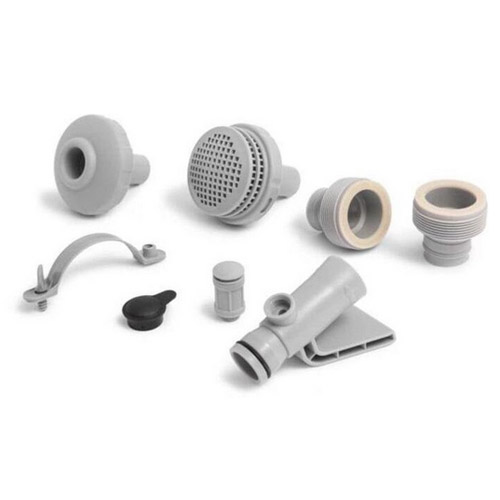 Deze set bestaat uit een inspuiter en een afvoer aansluiting voor dus zowel toevoer als afvoer van uw zwembad water, deze worden aangesloten aan de binnenkant van uw zwembadkuip en op de zwembadbuizen die de aansluiting maken met de filterpomp.