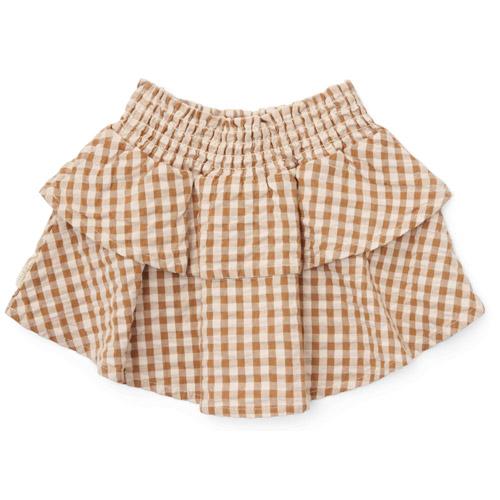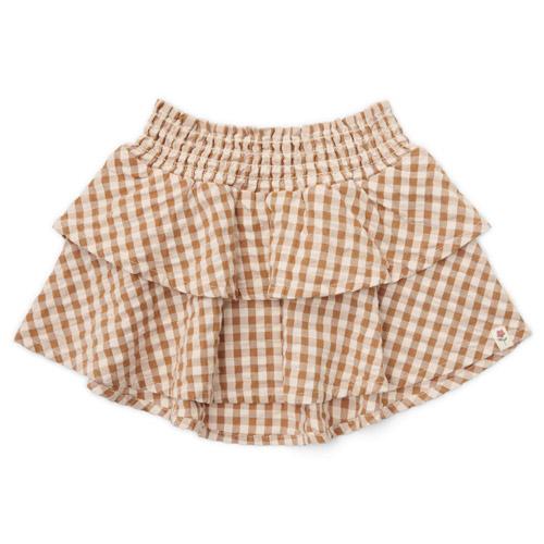 Dit schattige rokje heeft een mooi bruin-wit ruitpatroon en is gemaakt van een geribbelde textuur.