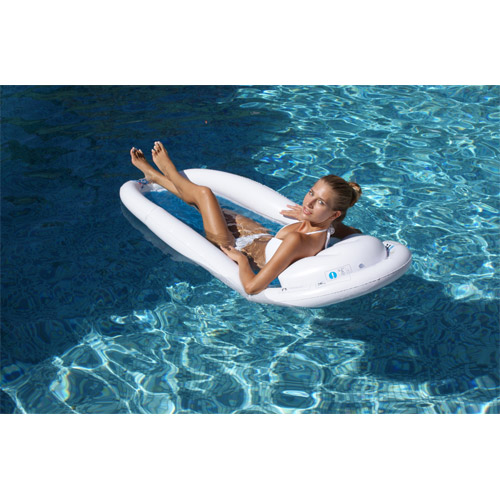 Het relaxen kan beginnen met deze Kerlis hangmat ligmatras ligt u zalig in het water.