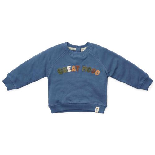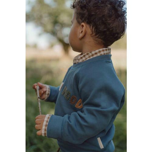De sweater is perfect voor koelere dagen en heeft geborduurde letters in verschillende aardetinten.