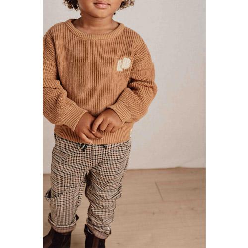 Een tijdloze look met de gebreide bruine tint, gemaakt van biologisch katoen.