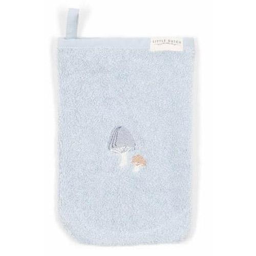 Het witte washandje is geborduurd met een speelse eekhoorn en de blauwe heeft een borduursel van twee kleine paddenstoelen.
