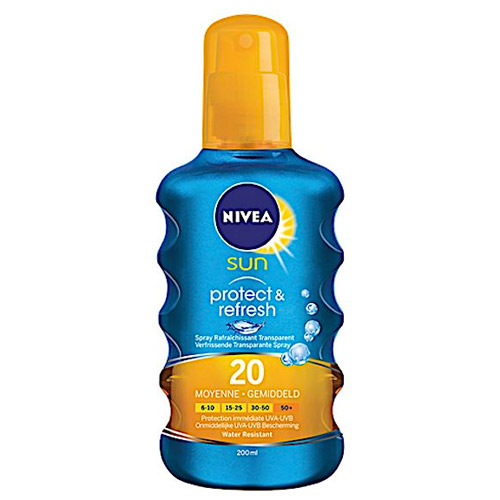 De zonnespray van Nivea heeft een verkoelend effect en zorgt voor een zijdezachte huid. Een 100% transparante formule, laat geen witte strepen na. Deze spray is niet vet en makkelijk aan te brengen.
