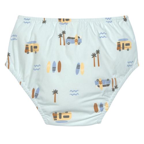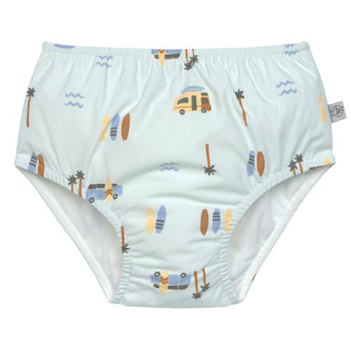 De groene babyzwemluier met camperprint biedt een mooi en milieuvriendelijk alternatief voor wegwerpluiers.
