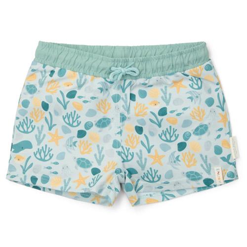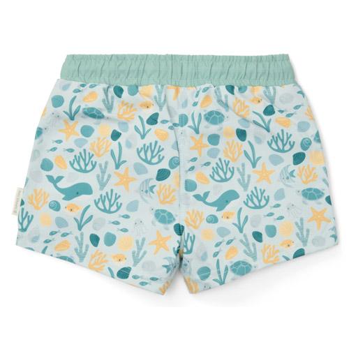 Het vrolijke Seashells dessin van zeesterren, koraal en walvissen, geeft deze zwemshort een speelse maritieme uitstraling.