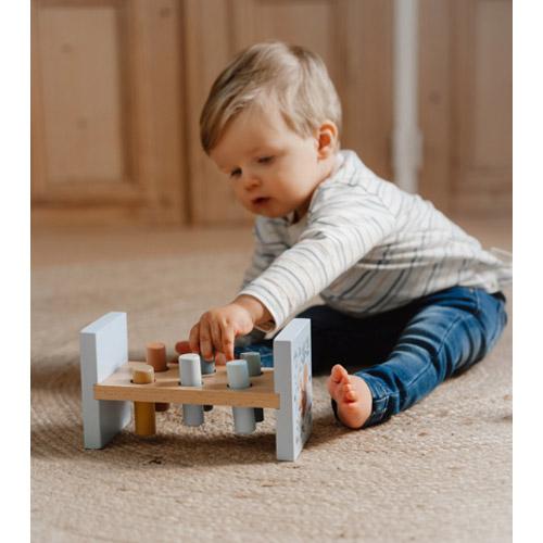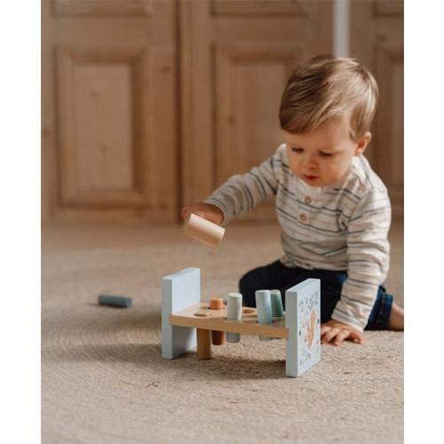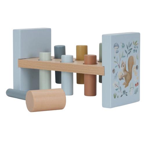 Gebruik de hamer om de 6 gekleurde staafjes in het houten hamerbankje te timmeren en verken de magie van Forest Friends.