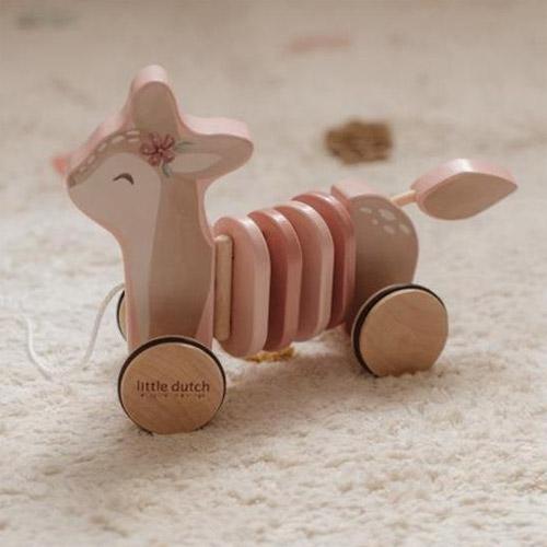 Gemaakt van stevig hout en versierd met kleurrijke ringen, biedt dit trekdier niet alleen eindeloos plezier maar bevordert het ook het lopen en de ontwikkeling van motorische vaardigheden.