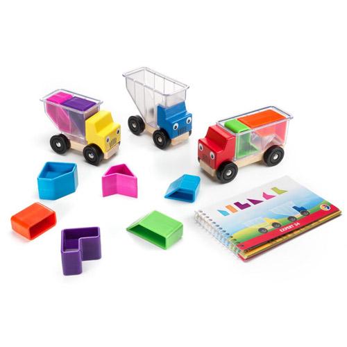 De allerkleinsten gebruiken de vrachtwagens eerst als speelgoedauto's, die ze kunnen vullen,