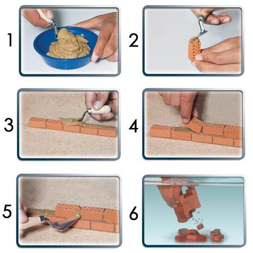 Inhoud: 155 bouwonderdelen, 1 cementschaal, truweel en gedetailleerde instructies.