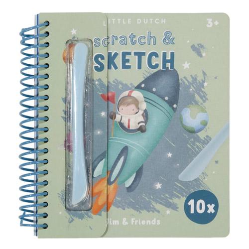 De kraskaarten en kleurplaten in het kras- en schetsboek 'Jim & Friends' van Little Dutch zijn een leuke creatieve activiteit voor beginnende kunstenaars.