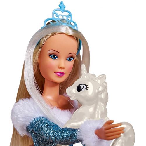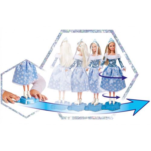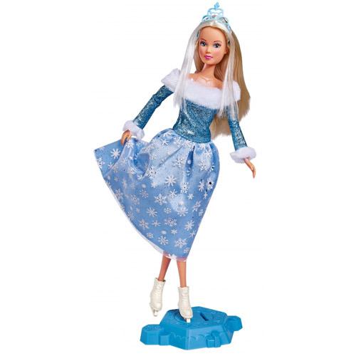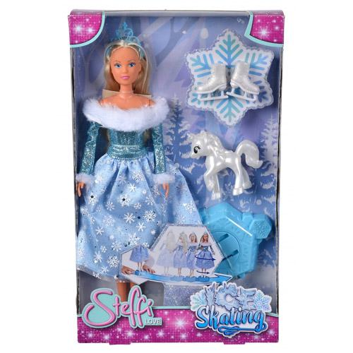Steffi gaat naar de schaatspiste in een droomachtige jurk die met sneeuwelementen is afgewerkt. De pop is 29 cm en is geschikt voor kinderen vanaf 3 jaar.