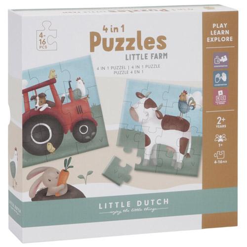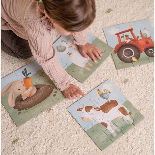 Maak spelenderwijs kennis met alle diertjes op de boerderij met deze 4 leuke puzzels.