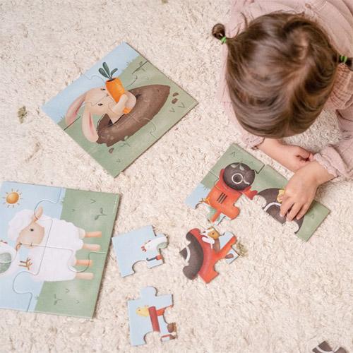 Elke puzzel heeft een ander niveau, van 4 stukken tot 16, om de puzzel vaardigheden en fijne motoriek te verbeteren.