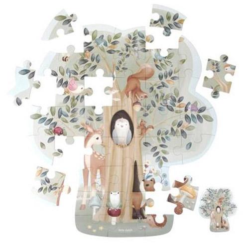 Terwijl je de boom in elkaar puzzelt, ontdek je de prachtige wezens die erin wonen en leven.