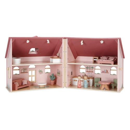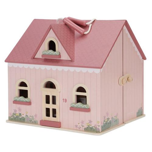 Het houten draagbaar poppenhuis van Little Dutch is een schattig en gezellig roze huisje met mooie details.