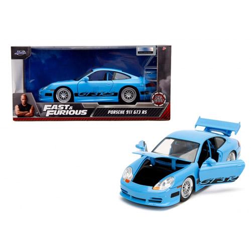 Metalen versie van de Porsche 911 GT3 RS uit Fast & Furious film. Net echt met de leuke details.Schaal 1:24.Deuren, motorkap en achterklep kunnen geopend worden.