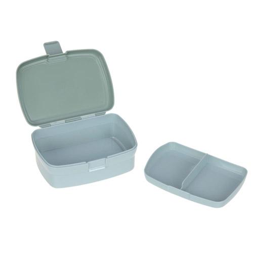- Het bovenste bakje biedt ruimte voor fruit en kleinere snacks, sandwiches en brood kan in het onderstaande vak worden opgeborgen.