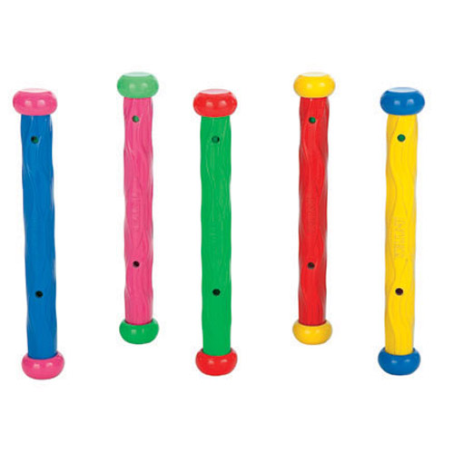 Kleurrijke duikstaafjes van Intex om achterna te duiken in het zwembad, leuk spel voor kinderen.